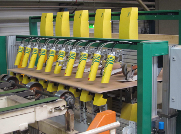 在木質(zhì)復(fù)合板的生產(chǎn)過(guò)程中檢測(cè)出氣泡、隱藏的分層、未膠合的區(qū)域。它們通過(guò)超聲波檢測(cè),并且可以在惡劣的生產(chǎn)環(huán)境中工作,例如灰塵,蒸汽和高溫。