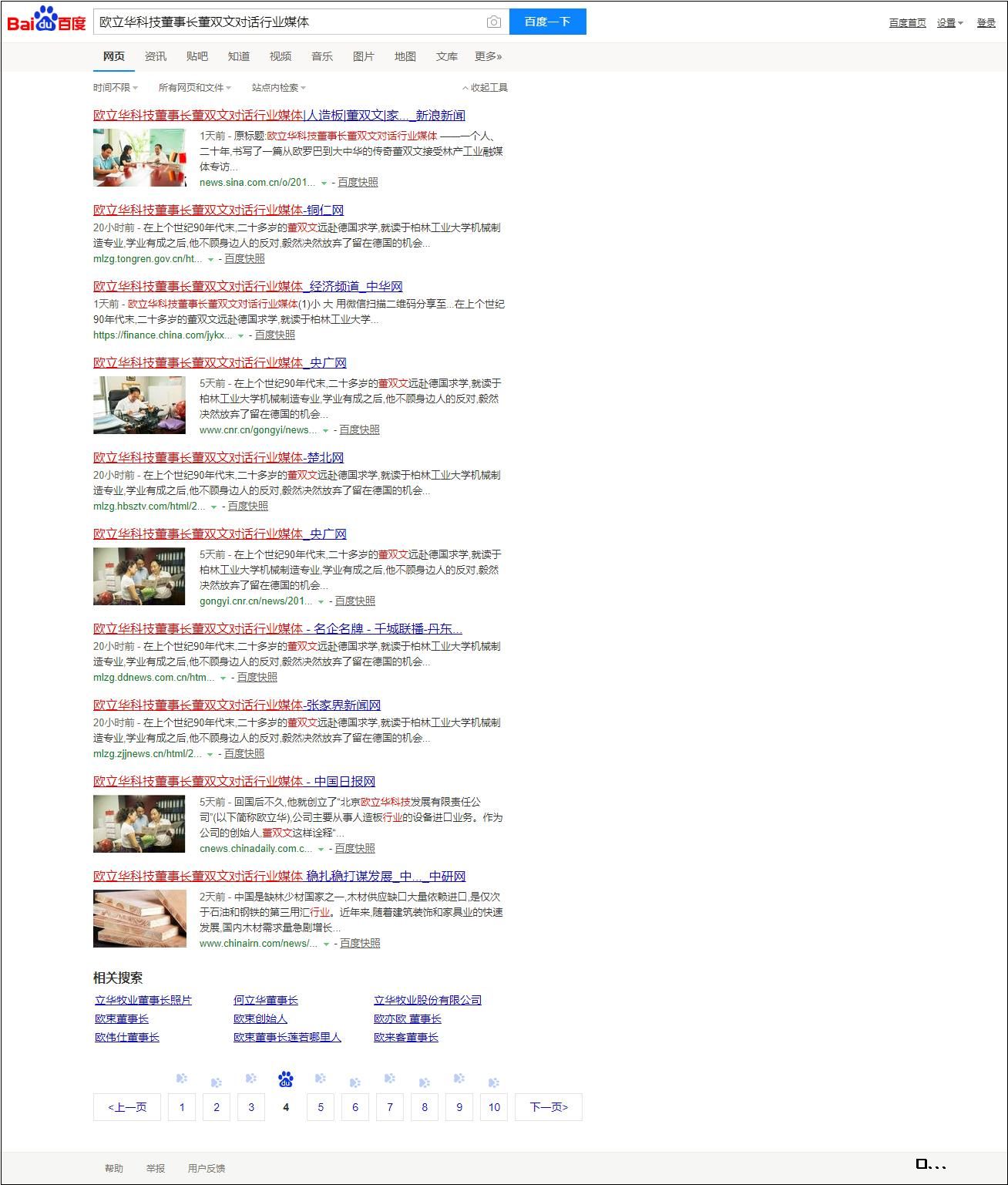 回國后不久,他就創(chuàng)立了“北京歐立華科技發(fā)展有限責(zé)任公司”(以下簡稱歐立華),公司主要從事人造板行業(yè)的設(shè)備進(jìn)口業(yè)務(wù)。作為公司的創(chuàng)始人,董雙文這樣詮釋“歐立華”:歐陸之石,技術(shù)立華。他創(chuàng)立“歐立華”的初衷很簡單:經(jīng)過德國幾年深造,他見識到了歐洲尤其是德國先進(jìn)的工業(yè)技術(shù),但是回國后卻發(fā)現(xiàn),當(dāng)時(shí)國內(nèi)在人造板行業(yè)的整體水平離國際一流還有較大的差距,意識到這點(diǎn),一心想為祖國做貢獻(xiàn)的他,決定將德國人造板行業(yè)先進(jìn)的技術(shù)設(shè)備引進(jìn)中國,通過引進(jìn)技術(shù)促進(jìn)中國人造板行業(yè)的發(fā)展,為國內(nèi)人造板行業(yè)的科技進(jìn)步做出自己的貢獻(xiàn)。