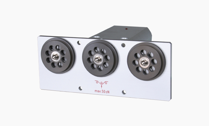 配備平滑運行的大直徑V型槽導輪適合于敏感性材料,導輪直徑29.5mm,滾珠軸承安裝